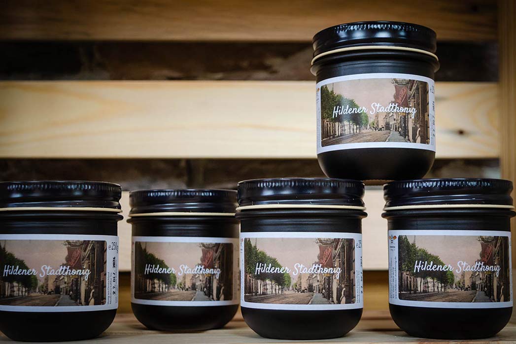 Die Bienenvölker, die den Hildener Stadthonig liefern, stehen im Hildener Norden, mitten in der Stadt. Diesen einzigartigen Honig bieten wir daher auch in einem einzigartigen Glas an. Den Honig können Sie bequem bei uns direkt per E-Mail auf dieser Website beziehen oder über eine der angegebenen Verkaufsstellen vor Ort.
